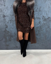 TUBINO DRITTO ELEGANTE DETTAGLIO FRANGE CON PAILLETTES.
